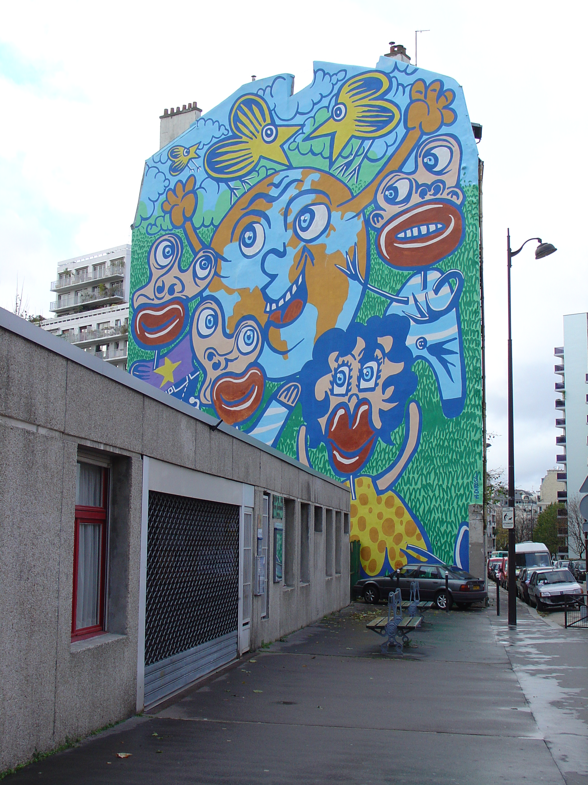 Mur éclairé (ISO 400 1/90 s, couleurs pas trop mal)
