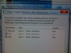En partageant en réseau, vaut mieux ajouter les drivers pour Windows 98 et XP