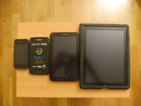 Et voilà toute la série : iPhone 4, Galaxy Note, Galaxy Tab 7, iPad 2 (9.7 pouces)